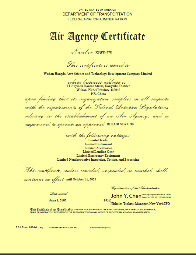 20066月    公司獲得FAA維修許可證